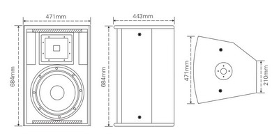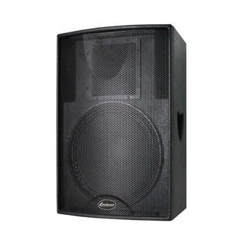 F15由一個15"紙錐低音單元與一個51mm聚酯膜釹磁壓縮單元組成,低音單元音圈為75mm,鋁盆架。可用于大型擴聲系統中作延時補聲只用。提供10個M10吊掛點,用于固定安裝中吊掛和調節角度。箱體由15mm的中纖板構成,箱體表面為耐磨的黑色點紋防水油漆。音箱底部裝有支架底座,后接線板兩個并聯的SPEAKON 4芯插座方便連接 ,黑色外覆透聲穿孔鐵網保護音箱單元。